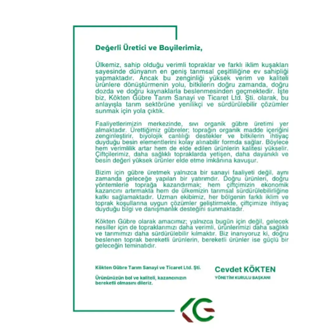 Kökten Gübre'nin güçlü yönetim ekibi, yılların deneyimi ve sektörel bilgi birikimi ile Türkiye tarımına değer katmaya devam etmektedir.